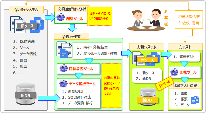 簡単な概要説明、及びご要望だけ頂ければ、高品質、且つ低コストのマイグレーションを実現できます。
